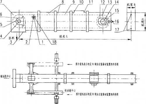 圖一 FU型鏈?zhǔn)捷斔蜋C(jī)結(jié)構(gòu)及驅(qū)動(dòng)裝置圖